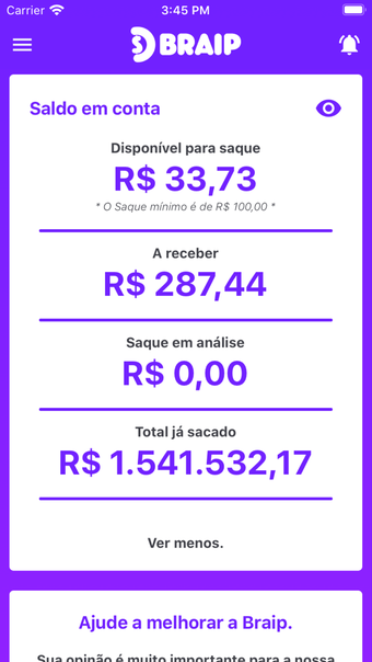 Braip requer iOS 12.1.2 ou superior. A versão atual do programa é 2.20, e você pode obtê-lo em português.